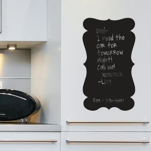 Delightful scroll chalkboard sticks to any wall or other smooth surface to keep you organized. Ideal for to-do and grocery lists, or reminders. easy to apply reposition to a new surface for a change use over and over just erase and write again chalk included Vinyl. Measures 27.55x19.68inch . Imported. Available in colors: Black. Available from JCPenny.